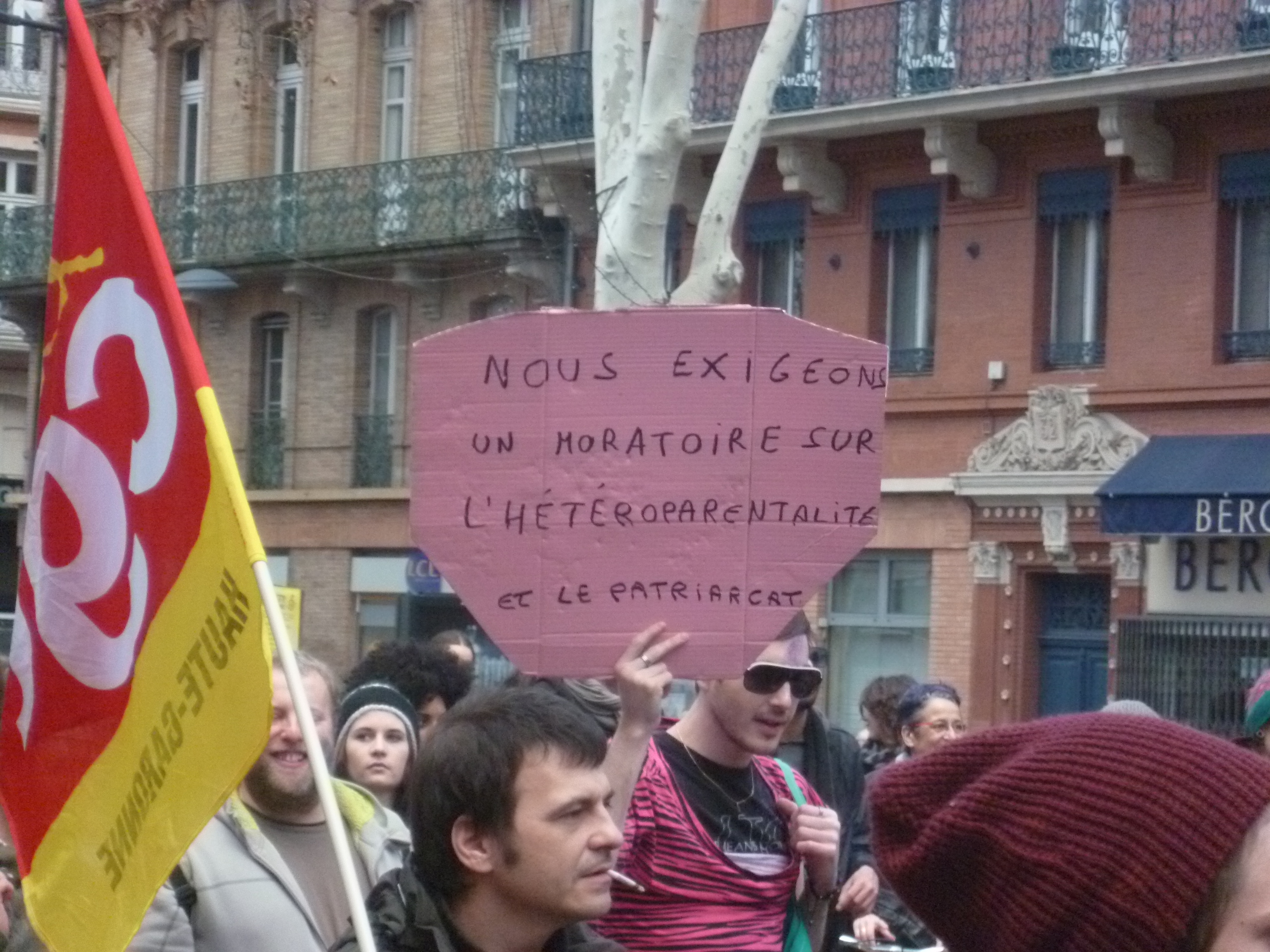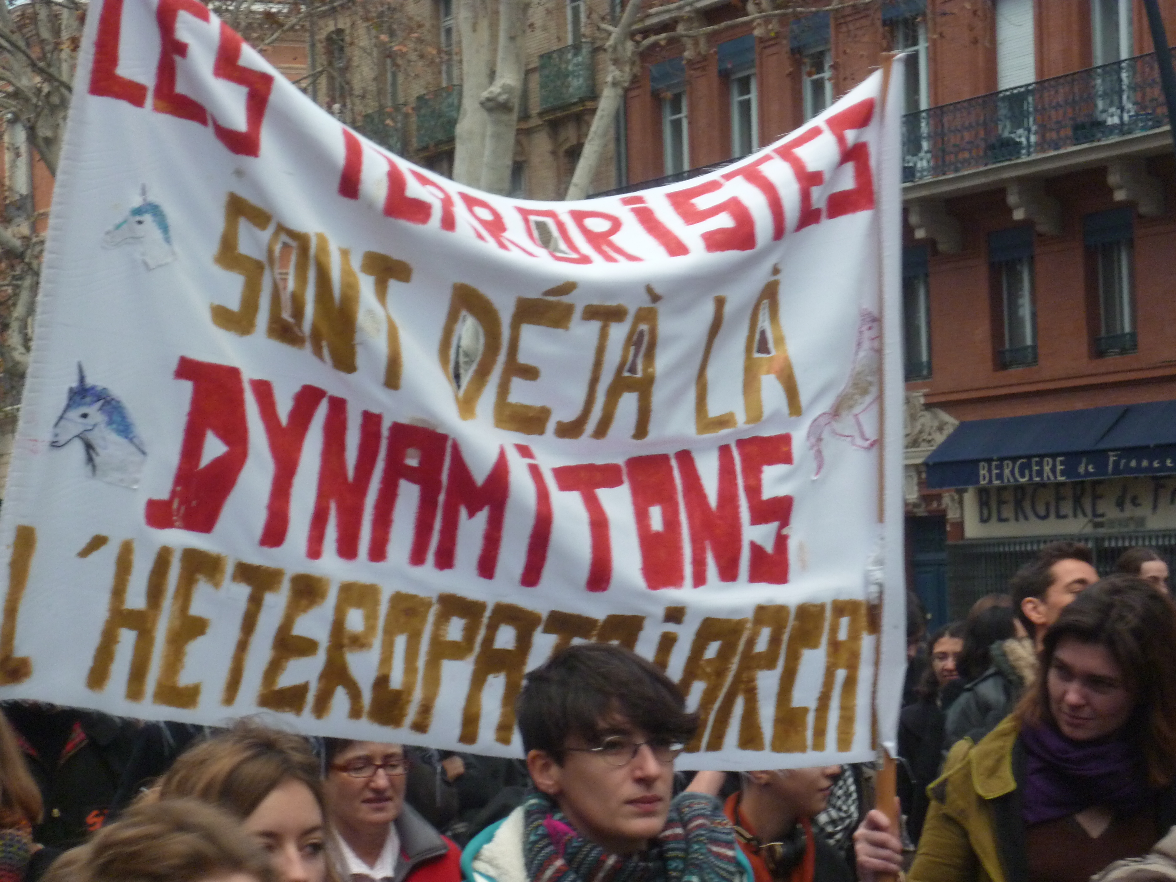 De retour de la manifestation, pas grand chose à se mettre sous la dent il faut le dire… En fait, pas plus que d’habitude: fiesta des « marginaux », slogans à l’humour douteux et surtout, flop de la mobilisations face aux manifestations du 17 et 18 novembre dernier.